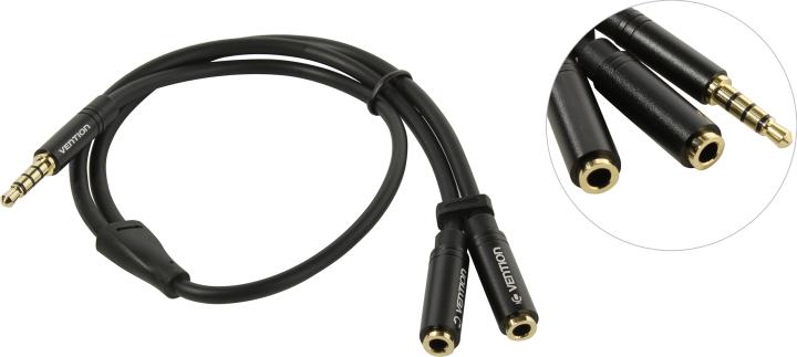 кабель-переходник 4-pin Jack 3.5-M -> 2 x Jack 3.5-F Vention BBCBY 0.3 м.